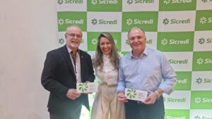 Na noite desta quarta-feira (8), em São Paulo, a Uniodonto do Brasil participou de evento promovido pelo Sicredi, no qual foi realizada a entrega simbólica de um cheque referente à participação nos lucros da cooperativa de crédito. Representando a Uniodonto do Brasil estiveram o Diretor Vice-Presidente de Operações e Mercado, José Clovis Tomazzoni de Oliveira, e o Gerente Administrativo e Financeiro, Laudo Rogério dos Santos.